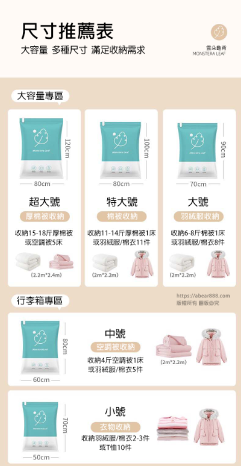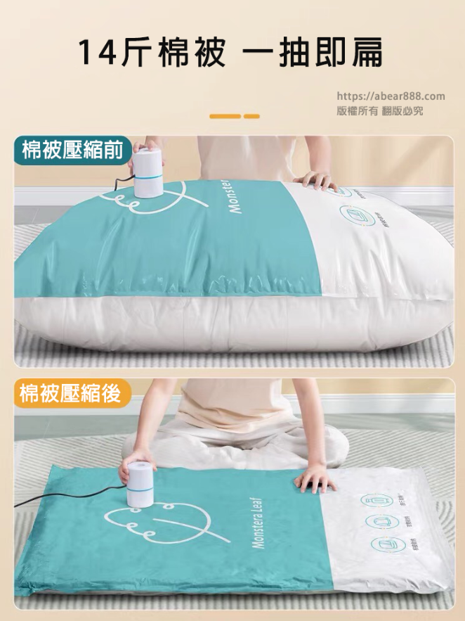 - 放入需要收納的衣物或棉被放入壓縮袋中。