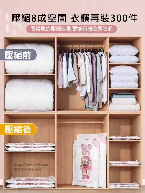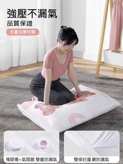 - 放入需要收納的衣物或棉被放入壓縮袋中。