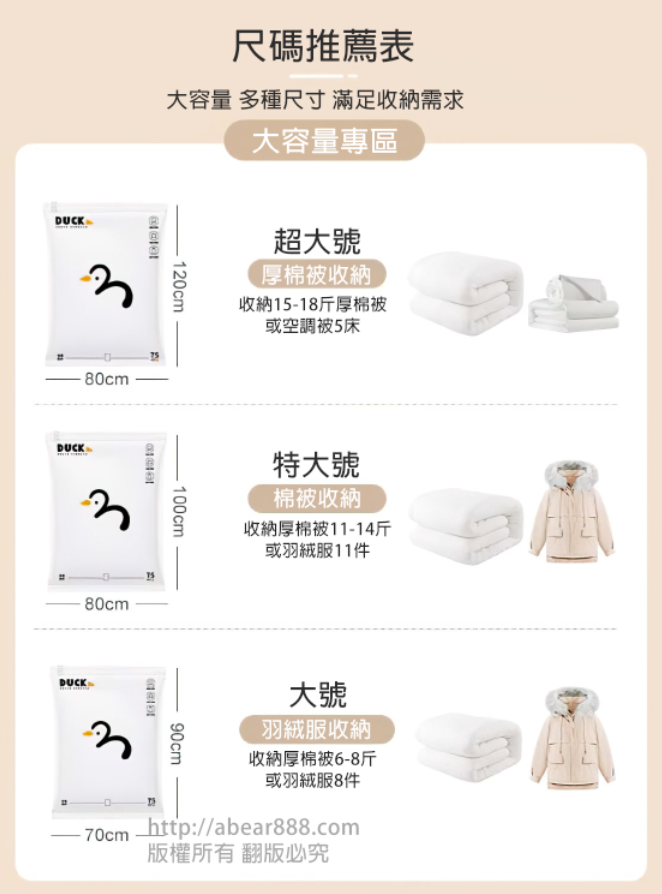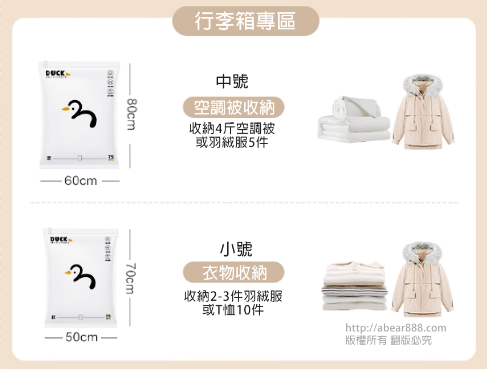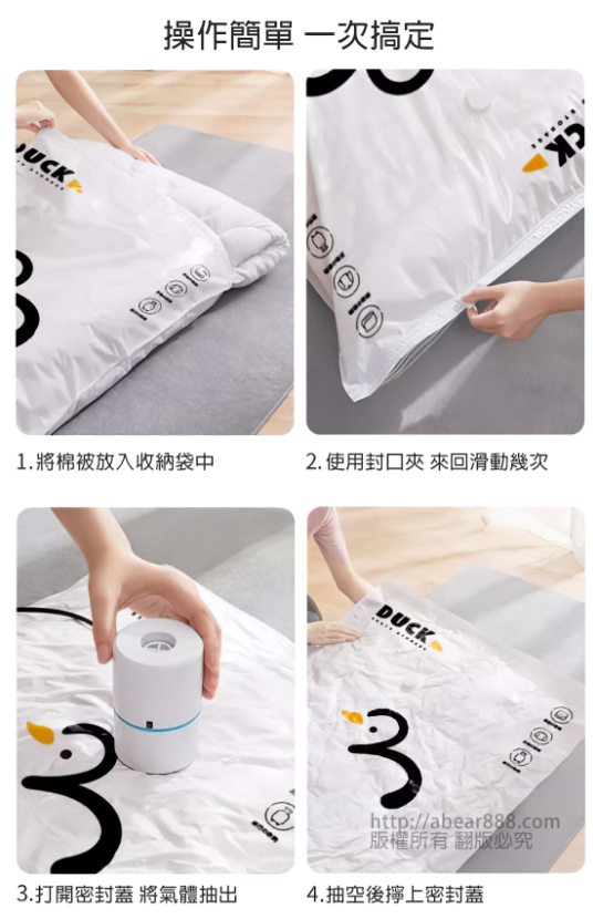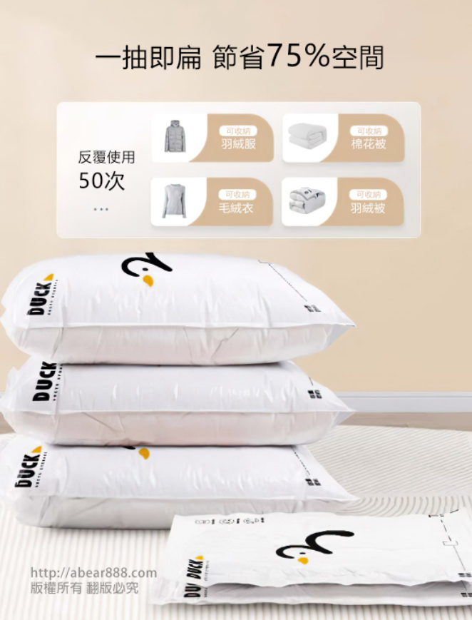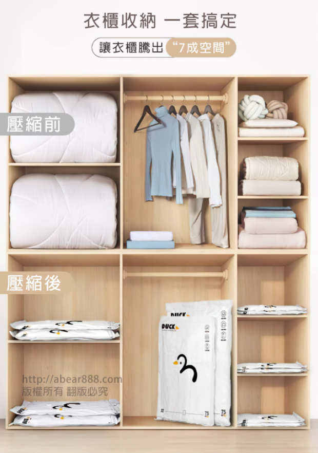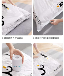 - 放入需要收納的衣物或棉被放入壓縮袋中。