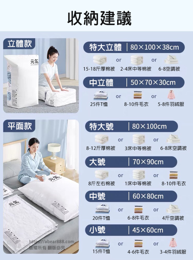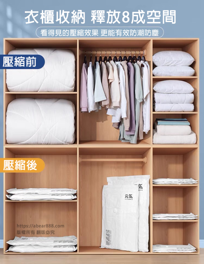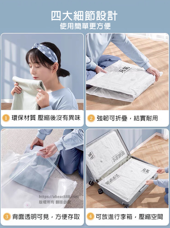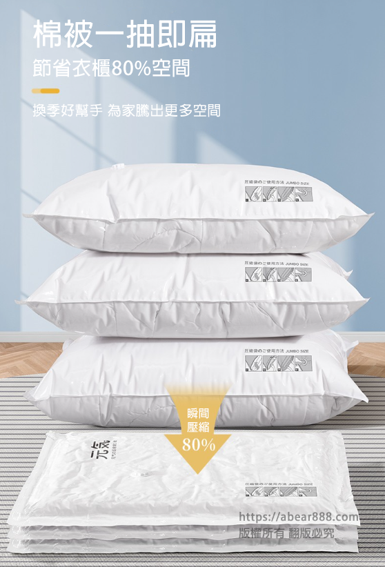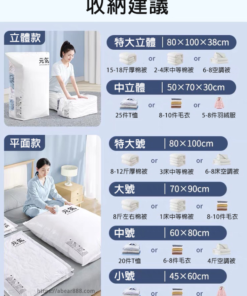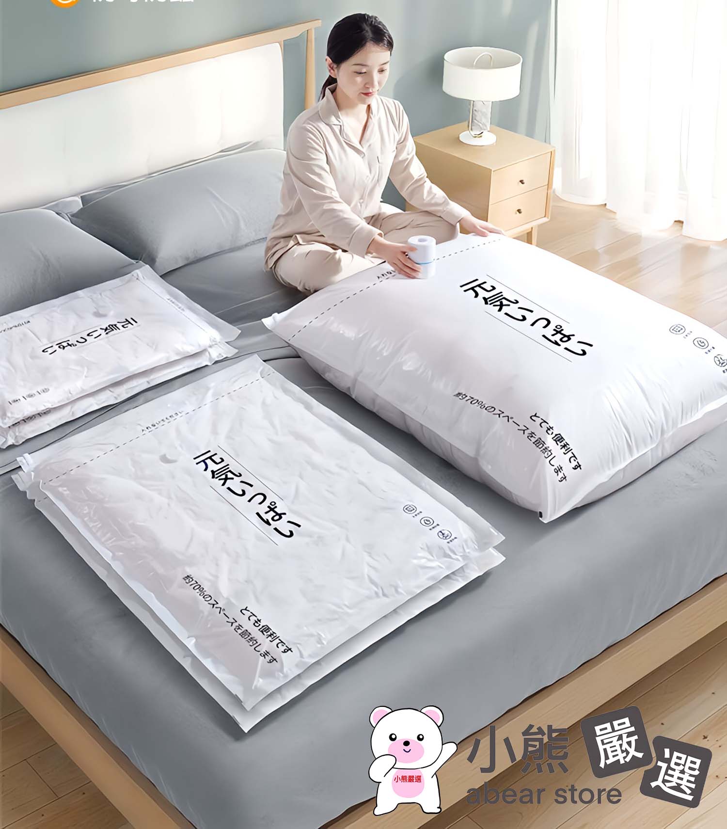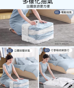 - 放入需要收納的衣物或棉被放入壓縮袋中。